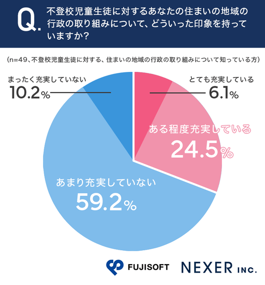■不登校児童生徒に対する住まいの地域の行政の取り組み、7割近くが「充実していない」と回答