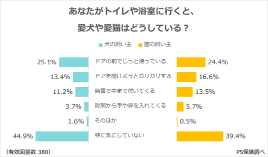 あなたがトイレや浴室に行くと、愛犬や愛猫はどうしている?