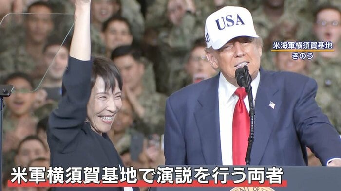 横須賀基地に到着したトランプ氏は、集まった兵士たちに高市氏をこう紹介しました。