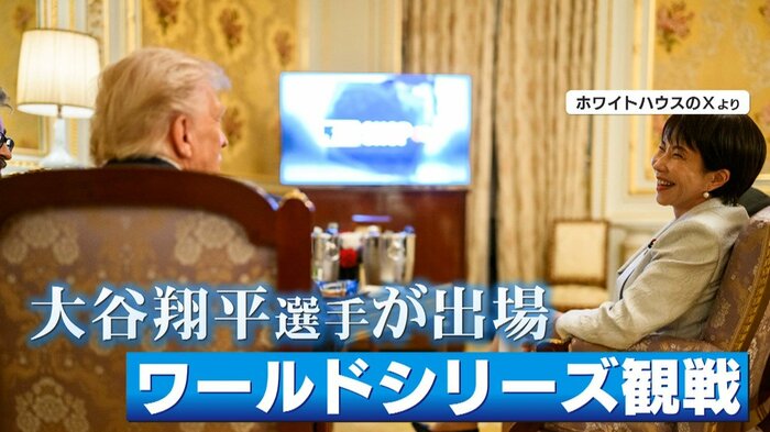 日米首脳会談が始まると、冒頭、高市氏はトランプ氏と一緒に大谷翔平選手が出場しているワールドシリーズの試合を観戦していたため開始が遅れたことをわび、フランクな“野球トーク”で、場が一気になごやかな空気になりました。