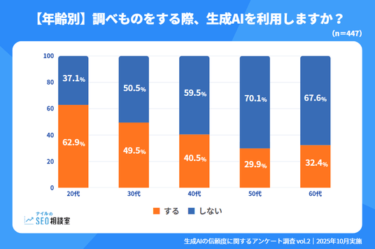 調べものをする際の生成AI利用率が大きく上昇、20代では6割超え