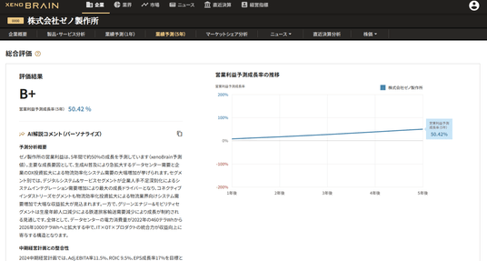 株式会社xenodata lab.(本社:東京都台東区、代表取締役:関 洋二郎)は、経済予測プラットフォーム『xenoBrain』において、50万社超の国内上場/未上場企業の5年先業績予測に「パーソナライズAI解説コメント」機能を追加しました。