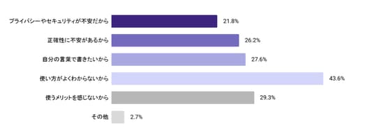さらに、自分の言葉で書きたいと考えている方や、正確性やセキュリティへの不安がある方が2~3割程度いました。