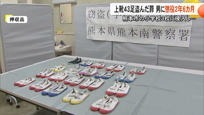 2024年3月、熊本市にある3つの小学校で上靴43足を盗んだ罪に問われた男に、熊本地裁は10月27日に「犯行の悪質性は軽視できない」として男に懲役2年6カ月の実刑判決を言い渡した。
