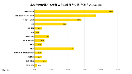 調査対象:従業員数が1,000人未満の「タイミー」を活用する事業者135社