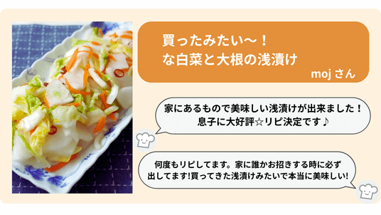 クックパッドに寄せられた漬物レシピへの直近5,000件のコメント(つくれぽ)を分析したところ、手作り漬物が支持される理由が見えてきました。【ユーザーが挙げる手作り漬物の魅力:つくれぽ分析】