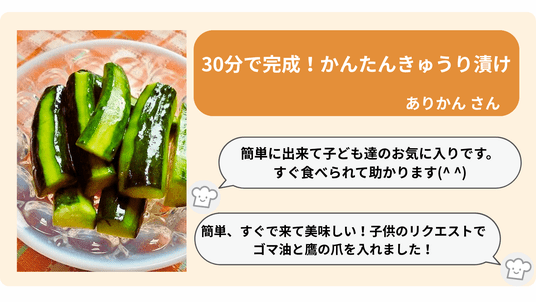 「娘の大好きな胡瓜だけの浅漬け、パクパク食べてました」「高校生息子のお弁当に。朝漬けて夜完食」など、家族の食卓での活用事例が多数寄せられています。
