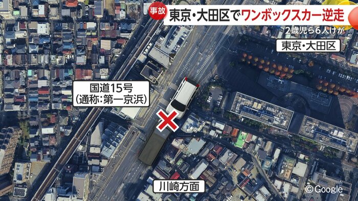 現場は東京・大田区を通る国道15号の下り車線。