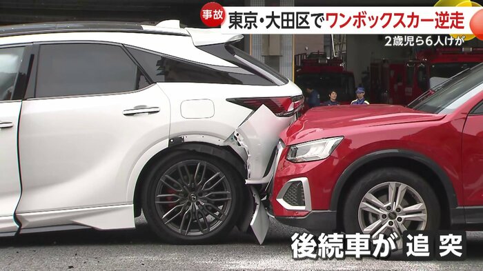 この事故で、2歳と4歳の子供を含む男女6人が軽いケガをした。