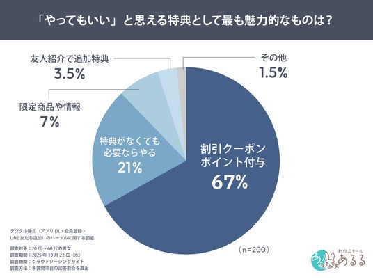 最も魅力的な特典は「割引クーポン・ポイント付与」が67%で圧倒的多数。