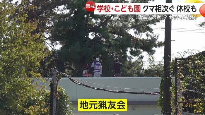 屋上には、銃を持った地元猟友会のメンバーが集まっていた。