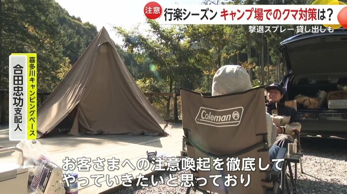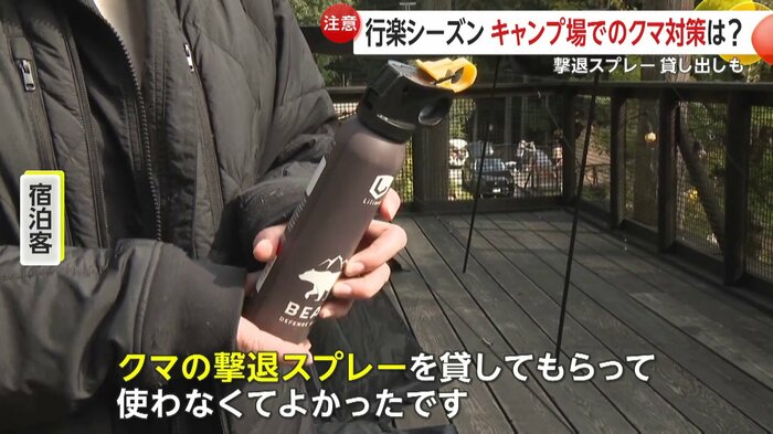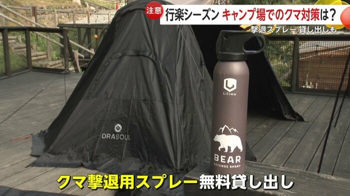 このキャンプ場では、安心して宿泊してもらおうと無料でクマ撃退用スプレーを貸し出していた。