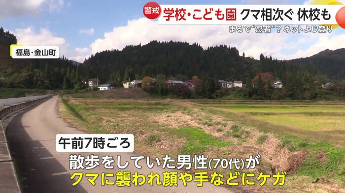 さらに、福島・金山町では、29日あさ7時頃に散歩をしていた70代の男性がクマに襲われ、顔や手などにケガをした。