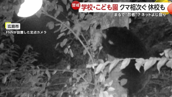 広島市の住宅の裏山では、木登りをするクマが目撃されていた。