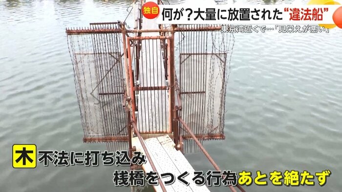 千葉県側では、船をつなぐための“くい”を木で不法に打ち込んだり、桟橋を勝手に造る行為があとを絶たない。