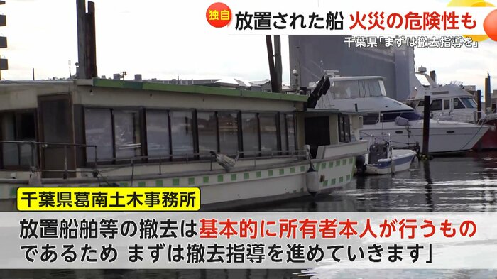 こうした“不法係留問題”を受け、千葉県葛南土木事務所は「所有者不明の船については、追跡調査をする」としたうえで、「今後、所有者に対し、移動・撤去を促す文書を送付していきます。放置船舶等の撤去は基本的に所有者本人が行うものであるため、まずは撤去指導を進めていきます」としている。