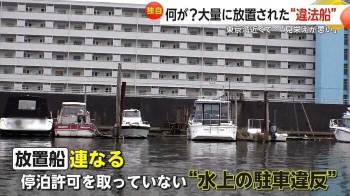 こうした放置船が連なっていて、河川や水路で停泊許可の取っていない、いわゆる“水上の駐車違反”が増えている。