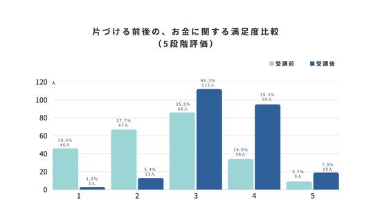 「お金に関する満足度(満足度4以上)」は、受講前の17.7%から受講後47.2%へと大きく上昇しました。