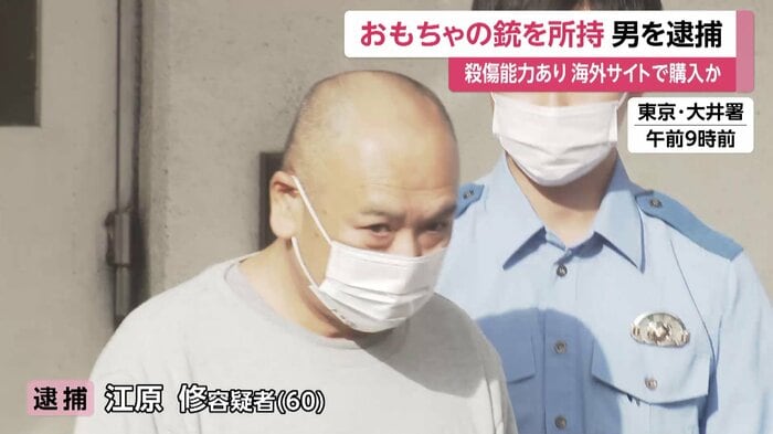無職の江原修容疑者(60)は、殺傷能力のある海外製のおもちゃの銃2丁を持っていた疑いがもたれている。