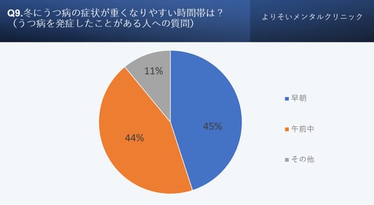 また、冬季うつは起床後から午前中にうつの症状が出やすいと分かりました。