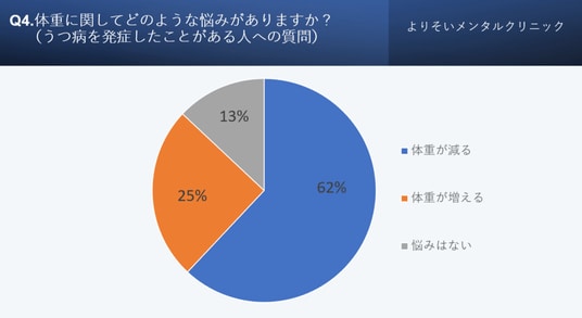 うつ病を発症した方の症状を食欲・体重・睡眠の3点から調べました。