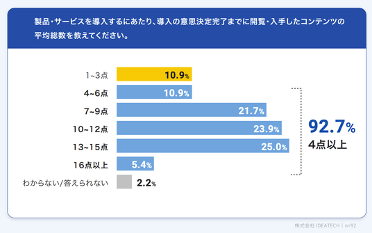 A.当社調査によれば、BtoB購買担当者の92.7%が、意思決定完了までに「4点以上」の