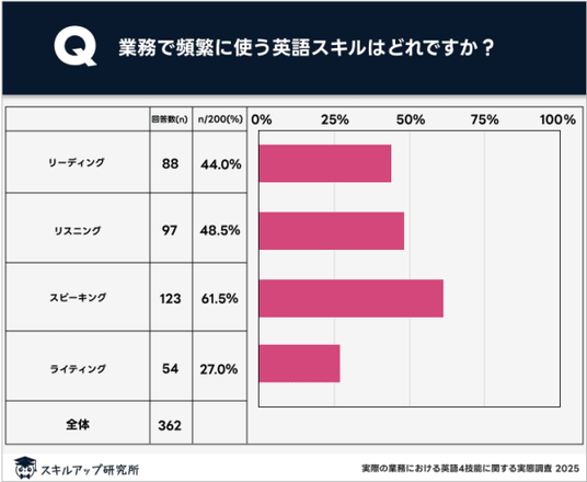 スキルアップ研究所、「実際の業務における英語4技能に関する実態調査」の結果を発表