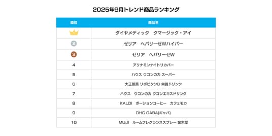 本分析では、2025年8月から9月にかけて注目度が伸びた商品を抽出し、全体のトップ10商品に加えて、カテゴリ別(コスメ・香水/ダイエット・健康/食品/生活雑貨・日用品)での動向を紹介します。各カテゴリーごとに、特に注目された商品やユーザー属性の特徴を読み解きながら、訪日外国人の関心トレンドを探ります。