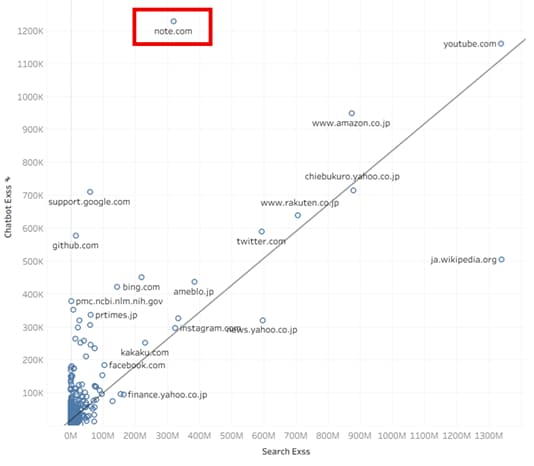 - noteは、生成AI経由流入の期待値を大きく上回る「特異な存在」(ヴァリューズ)