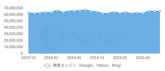 AI検索時代のコンテンツマーケティングの在り方を問う前に、そもそも【検索】という行為自体において、「検索離れ」「Google離れ」は起きているのでしょうか。ヴァリューズのWeb行動ログ分析ツール「Dockpit(ドックピット)」にて調査したところ、2025年現在、「検索離れ」は起きていないと言える状況であることがわかりました。