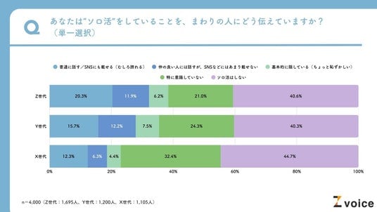 ソロ活というと、自分だけで楽しむイメージをもつ人もまだまだ多いでしょう。では実際に、ソロ活をしている人たちは、周囲へそのことを伝えているのでしょうか。