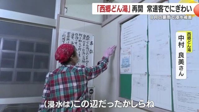 「色々な人にお世話になって援助してもらって大変感謝している」と話すのは、西郷どん湯の中村良美さん。ボランティアの協力を得ながら、泥の撤去や電気設備の修理など、再開に向けた復旧作業が進められてきた。