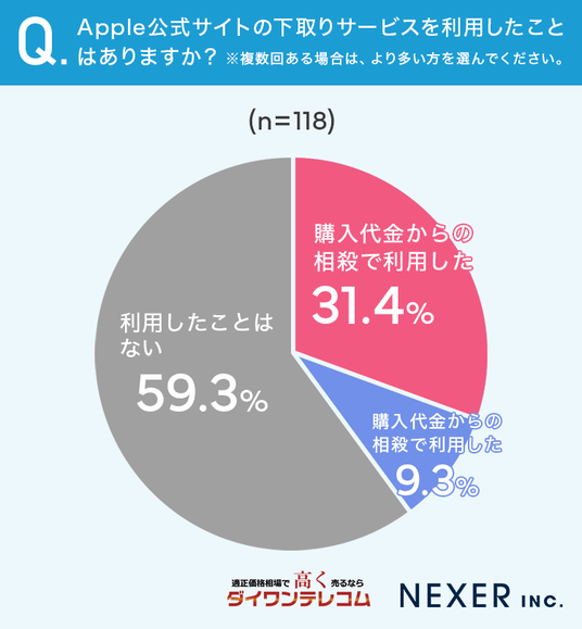 合計で4割以上の方が、Apple公式サイトの下取りサービスを利用したことが「ある」と回答しています。