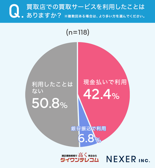 ■49.2%が買取店での買取サービスを利用したことが「ある」