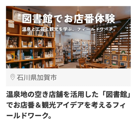 ・温泉地の空き店舗を活用した「図書館」でお店番&観光アイデアを考えるフィールドワーク。(興味ある数:141件)