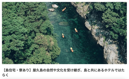 世界自然遺産の島、屋久島。「島の文化や自然から学び、美しい屋久島を継承する」という考えを持つホテルで、国内外からのゲストをもてなすスタッフを募集。寮が完備されており、憧れの島暮らしをすぐに始められます。