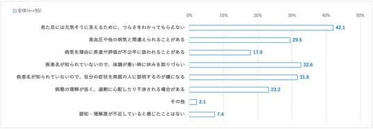 「見た目には元気そうに見えるために、つらさをわかってもらえない」42.1%