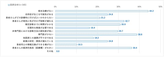 医師調査でも、57%が経済的負担、53%が日常生活への影響、49%が患者の知識不足を懸念しており、治療や経済面での課題が患者・医師双方で共通していることが明らかになりました。