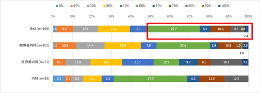 医師への質問:現在のご施設で診療した肺動脈性肺高血圧症(PAH)の患者さんについて、症状が発生してから来院までのタイミングが遅い、と思った方の割合を教えてください。