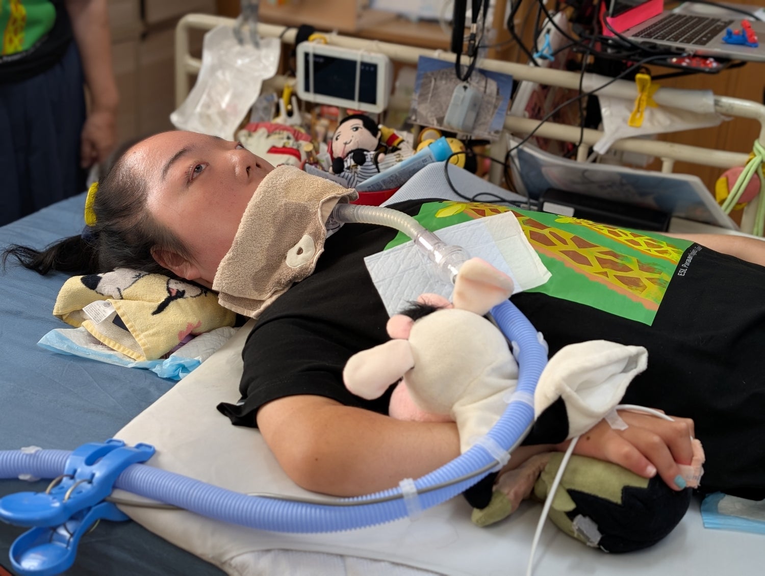 脊髄性筋萎縮症1型(SMA1型)で、人工呼吸器を24時間つけています。