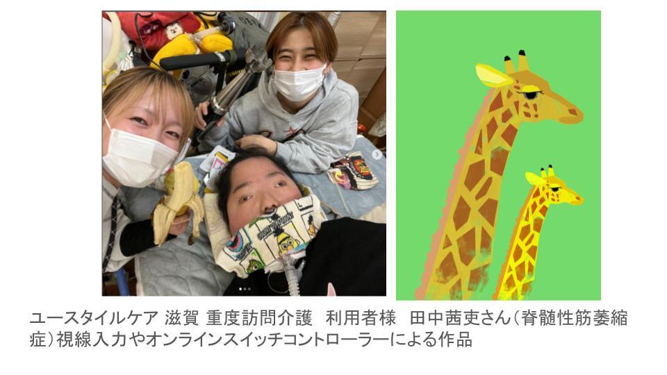 今回、この企画立ち上げのきっかけとなったのが、ユースタイルケア 重度訪問介護の利用者様、田中茜吏さん(たなかあかりさん・脊髄性筋萎縮症)と山本総来さん(やまもとふさきさん・四肢麻痺のある重度心身障害)の描いた作品でした。