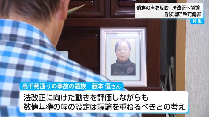 事故で妹を亡くした藤本さんは、法改正に向けた動きを評価しつつも、数値基準の設定については、議論を重ねるべきだと訴えている。
