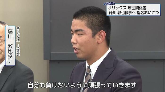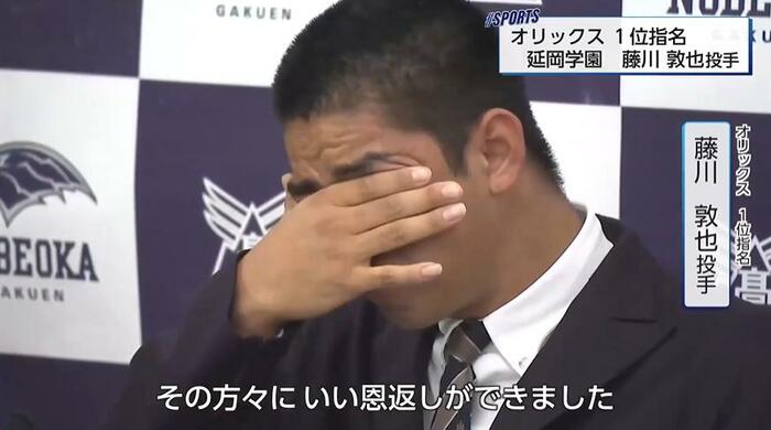 プロ野球ドラフト会議で延岡学園高校の藤川敦也投手がオリックス・バファローズから1位指名を受けた。会見では野球人生を振り返り感極まる場面も。支えてくれた人々へ感謝を伝え、「日本一の投手」を目指すと力強く誓った。