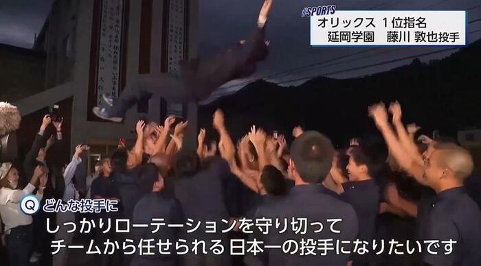 そのうちの一人、延岡学園高校の藤川敦也投手は、オリックス・バファローズから1位指名を受けた。