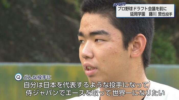 自分は日本を代表するような投手になって、侍ジャパンでエースを取って世界一になりたいと思っています。
