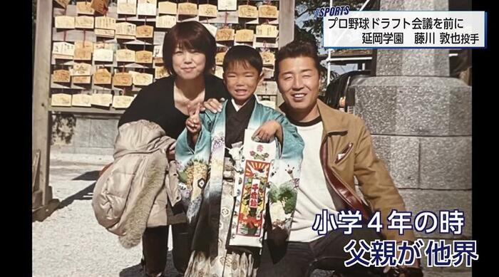 福岡県出身の藤川投手は、小学4年生で父親を病気で亡くし、以降は母・七恵さんが女手一つで育ててきた。