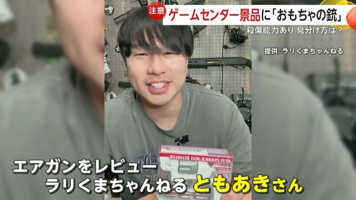 YouTubeでエアガンのレビューをするチャンネルを運営するともあきさんは、実際におもちゃの銃をゲームセンターの景品として入手したという。