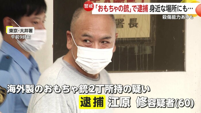 逮捕された江原容疑者が所持していたおもちゃの銃も、2つ含まれていた。