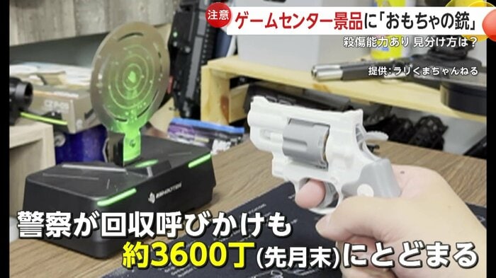 この銃も実弾を装塡(そうてん)できて殺傷能力があるとして、回収を呼びかけているおもちゃの銃の1つだが、出回っていたのがゲームセンターのクレーンゲームの景品として、全国で約1万6000丁が出回ったとみられている。
