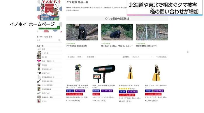 イノホイではクマ用の護身グッズも販売しており、特に撃退スプレーの売れ行きは、前年の約1.5倍に増加している。